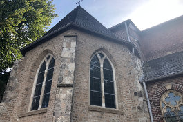 Die Kirche St. Mariä Geburt in der Stammheimer Hauptstraße 65 wird zum ersten Mal im Jahr 1075 in einer Urkunde erwähnt. Anfang des 14. Jahrhunderts entstand die heutige Marienkapelle. Sie war von einem Friedhof umgeben und wurde vom Kloster St. Martin in Köln betreut. Im Jahr 1905 wurde der neugotische Anbau errichtet und 1909 wurde Stammheim eine eigenständige Pfarrei. Wegen eines großen Neubaugebietes, der sog. GAG-Siedlung, wurde von 1969 bis 1971 in dieser Siedlung eine moderne Kirche errichtet: St. Johannes Evangelist.
