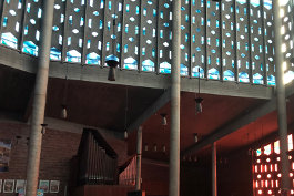 Beichtstuhl, die Orgel und die Fenster. Als einziger Ausbruch aus diesem fast